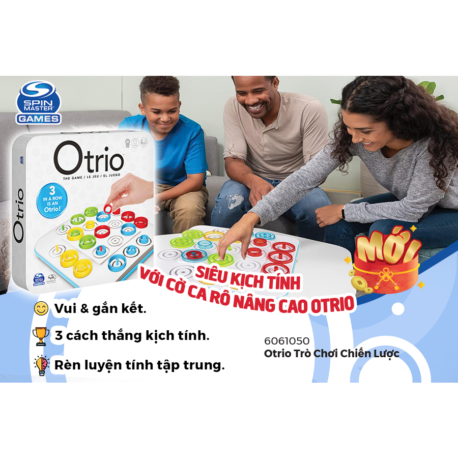 Mua tại TiktokTrò Chơi Otrio SPIN GAMES 6061050 “Otrio - Trò Chơi Caro Nâng Cao, 6061050” siêu kịch tính dành cho nhóm từ 2 đến 4 người, đòi hỏi bạn phải suy nghĩ để có chiến lược nhanh nhất và dành cơ hội chiến thắng trước, mỗi lần thắng được gọi là Otrio. Đặc biệt, trò chơi có 3 cách để dành chiến thắng, giúp trò chơi trở nên thú vị hơn. Bộ đồ chơi gồm: 1 khay cờ, 36 quân cờ (4 màu) Số người chơi: ít nhất là 2 người, tối đa 4 người (phù hợp tổ chức chơi với gia đình và bạn bè). Cách chơi đơn giản: lần lượt từng người chơi sẽ đặt quân cờ vào bàn cờ, có 3 cách chiến thắng như thông tin minh họa kế bên trên.