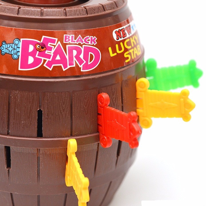 Là trò chơi mới lạ hấp dẫn vô cũng thú vị : tham gia vào trò chơi là bạn đang tham gia vào trận chiến đầy căng go và may rủi. Hải tặc nấp trong một thùng rượu to, trên thùng rượu có rất nhiều các lỗ nhưng chỉ có duy nhất một lỗ mà khi đâm kiếm vào sẽ trúng vào Hải tặc và Hải tặc sẽ nhảy hẳn ra ngoài . Vô cùng thúvị! Khác hẳn so với các trò chơi khác, trong trò chơi này, ai là người đâm trúng khiến Hải tặc nhảy ra thì đó sẽ là người thua cuộc, hoặc bạn cũng có thể ra luật chơi ngược lại . Từ đó cuộc chơi sẽ khiến bạn cùng người chơi luôn thấy lo sợ và hồi hộp khi hải tặc có thể làm bạn bất ngờ bất kỳ lúc nào! Với lần chơi sau, bạn sẽ rút hết kiếm trên thân thùng rượu ra, đặt hải tặc vào và xoay vài vòng. "Lỗ bí mật" lúc này sẽ chuyển dịch ra một vị trí khác và mọi người sẽ có một trận chiến mới đầy thú vị.