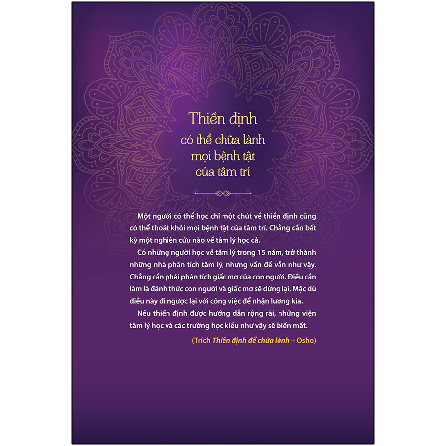 Mua tại Tiktok"Hoàn toàn tự nhiên khi mỗi tế bào trong cơ thể, mỗi cơ quan và mỗi phần của cơ thể tự chữa lành cho chính nó, và tương tự như việc sẽ quá trái tự nhiên nếu như bạn không tin vào cơ thể này và nghi ngờ chính nó. Tin vào cơ thể là điều cần thiết cho cuộc sống, đặc biệt hơn việc nghi ngờ khi sử dụng thuốc vào cơ thể tự nhiên." (Trích Tin vào cơ thể - Seth/Jane Roberts) "Một người có thể học chỉ một chút về thiền định cũng có thể thoát khỏi mọi bệnh tật của tâm trí. Chẳng cần bất kỳ một nghiên cứu nào về tâm lý học cả. Có những người học về tâm lý trong 15 năm, trở thành những nhà phân tích tâm lý, nhưng vấn đề vẫn như vậy. Chẳng cần phải phân tích giấc mơ của con người. Điều cần làm là đánh thức con người và giấc mơ sẽ dừng lại. Mặc dù điều này đi ngược lại với công việc để nhận lương kia. Nếu thiền định được hướng dẫn rộng rãi, những viện tâm lý học và các trường học kiểu như vậy sẽ biến mất." (Trích Thiền định để chữa lành - Osho)