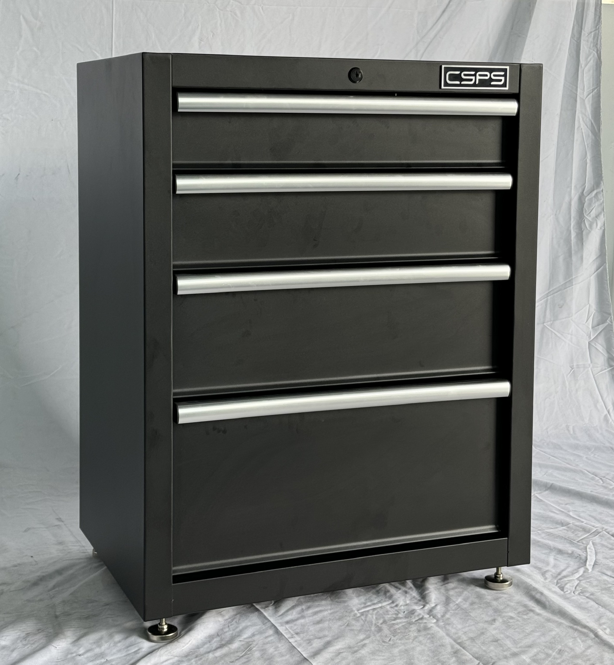 Tủ dụng cụ CSPS 84cm - 04 hộc kéo Kích thước sử dụng: 84cm Rộng x 51cm Sâu x 101cm Cao Khối lượng sử dụng: 52.9 kg Tổng chịu tải: 320 kg Ngăn kéo: 04 ngăn,