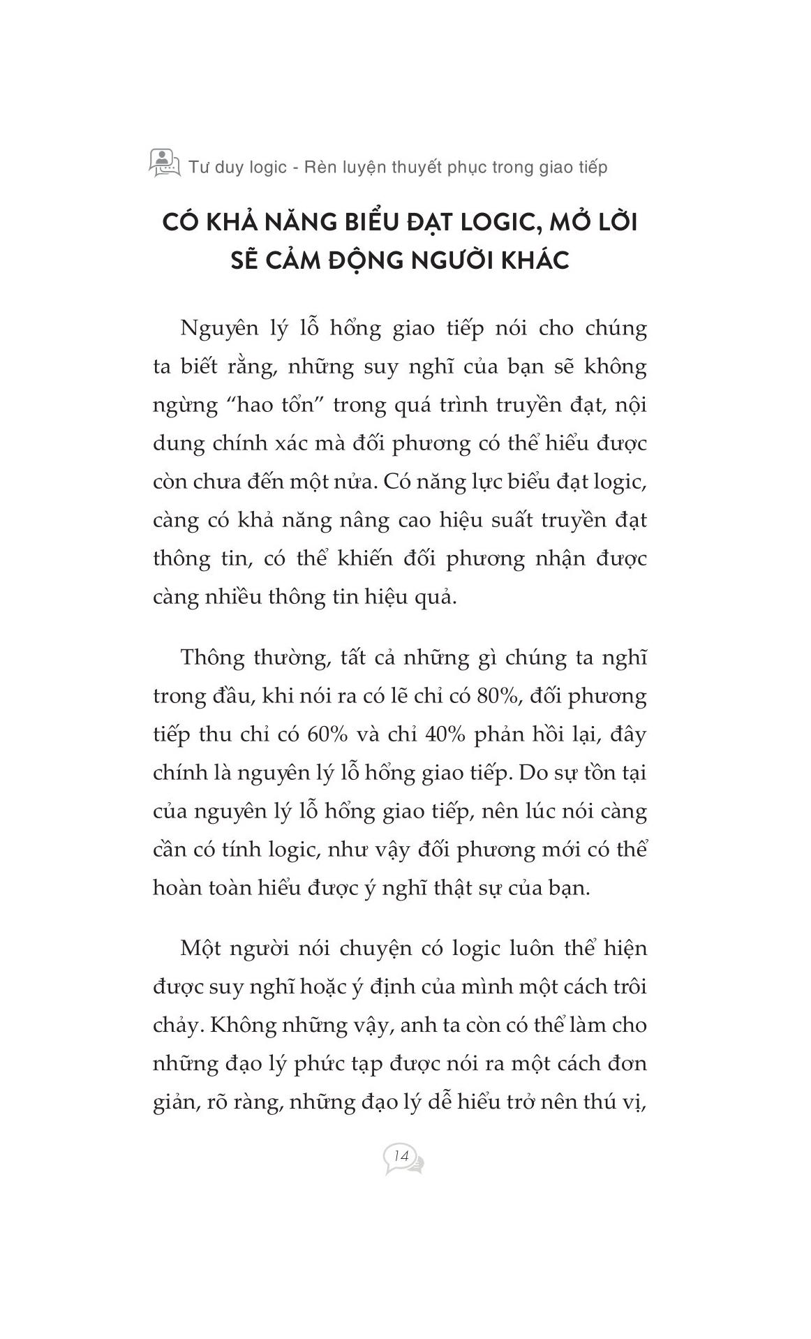 Khi giao tiếp và truyền đạt suy nghĩ của bạn với người khác, nếu không có tính logic, lời nói của bạn sẽ là chướng ngại vật cản trở giao tiếp giữa hai bên. Những mối quan hệ giữa các cá nhân phức tạp của xã hội hiện đại, cuộc sống và công việc nhịp độ nhanh đòi hỏi chúng ta phải có một "lời nói logic" thông minh hơn, sắc sảo hơn.
