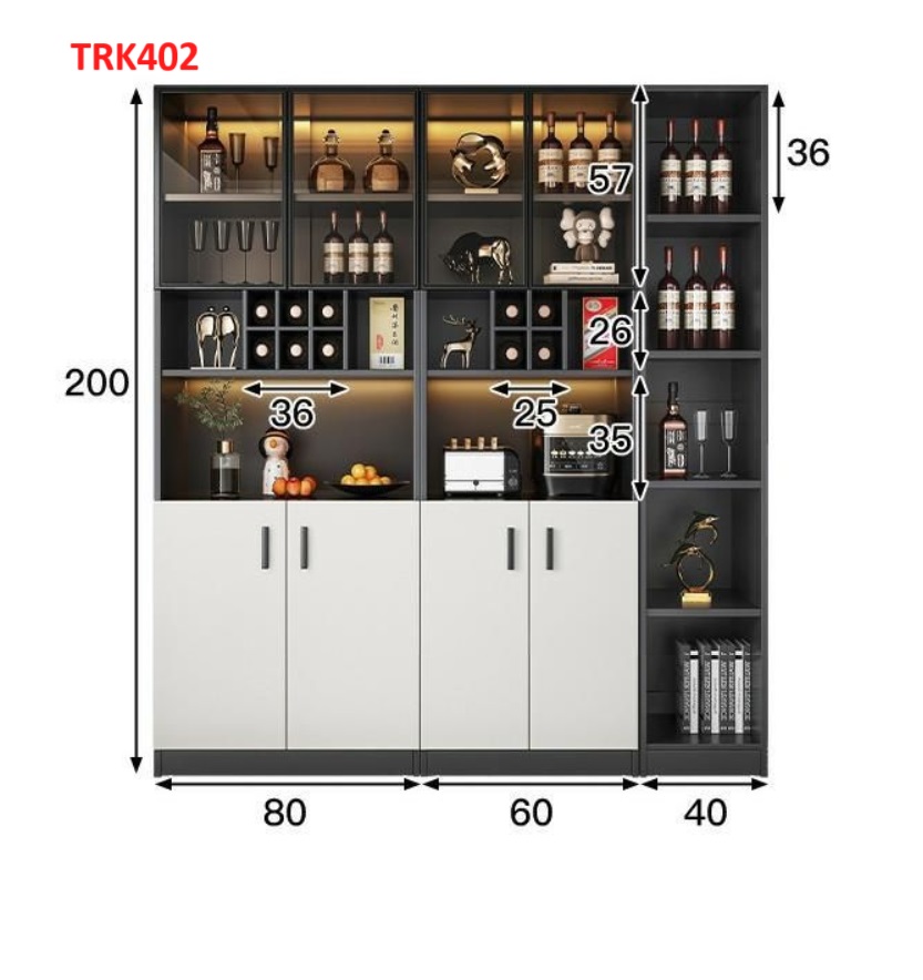 ✨Tủ rượu cánh kính, tủ trưng bày rượu TRK402 - Nội thất lắp ráp Viễn Đông ADV