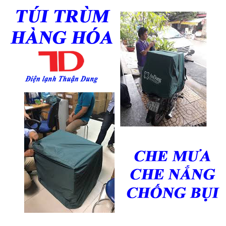 Mua tại TiktokTÚI TRÙM HÀNG HÓA SAU XE MÁY 80x80 CM, ÁO TRÙM CHUYÊN DỤNG CHO HÀNG HÓA Lưu ý: Quý Khách lựa chọn đúng mẫu như hình. THÔNG TIN SẢN PHẨM: Việc vận chuyển hàng hóa, thiết bị, đặc biệt những thùng hàng Carton dưới thời tiết mùa mưa bão gây ra rất nhiều thiệt hại cho nhà vận chuyển. ÁO TRÙM CHỐNG THẤM KHI ĐI MƯA có chất liệu là vải dù dày chống thấm nước. Giúp cho việc vận chuyển hàng hóa vào mùa mưa được đảm bảo. Ngoài ra áo trùm có thể sử dụng che khi trời nắng, chống bụi cho hàng hóa, và thiết bị. MUA ÁO TRÙM HÀNG HÓA Ở ĐÂU? Cửa Hàng: Điện lạnh Thuận Dung Vật Tư Điện Lạnh Thuận Dung chuyên cung cấp sỉ và lẻ: