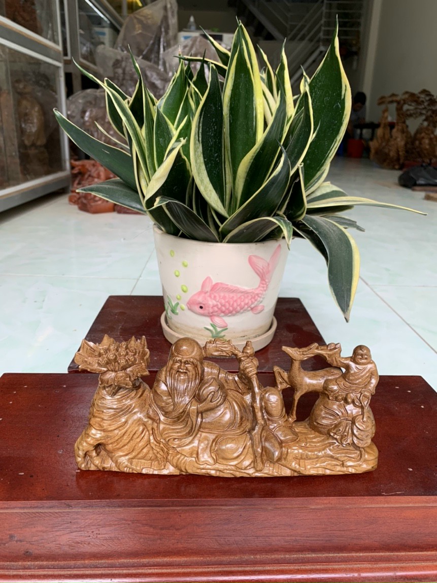 ✨Tượng Cụ thọ hươu củ sâm bằng gỗ bách xanh thơm nức kt 20×9×5cm