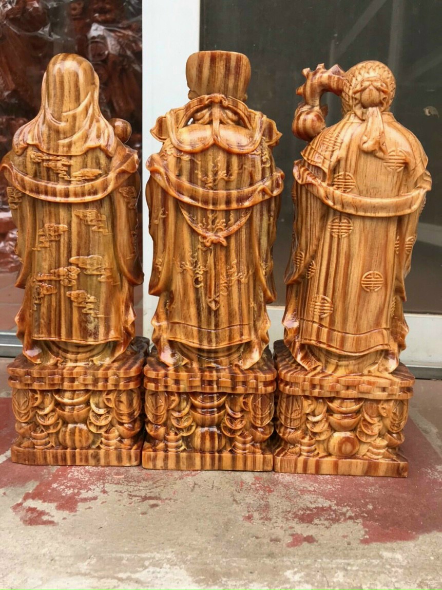 Tượng tam đa phúc lộc thọ làm bằng gỗ huyết long