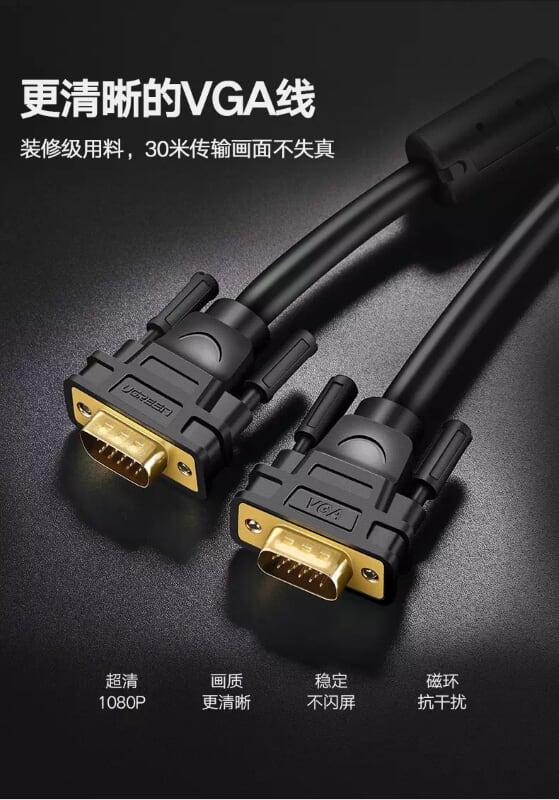 Cáp VGA Ugreen chính hãng chuẩn 3C+6 3C+9 đầu mạ vàng dài 1.5M 3M 5M 8M 10M 12M 15M 20M 30M