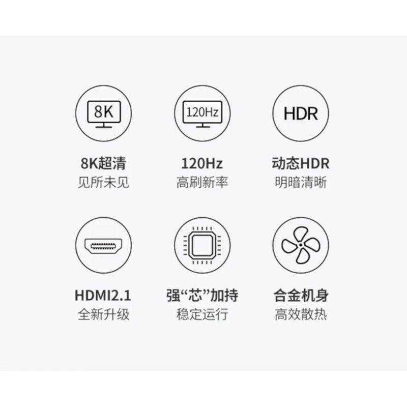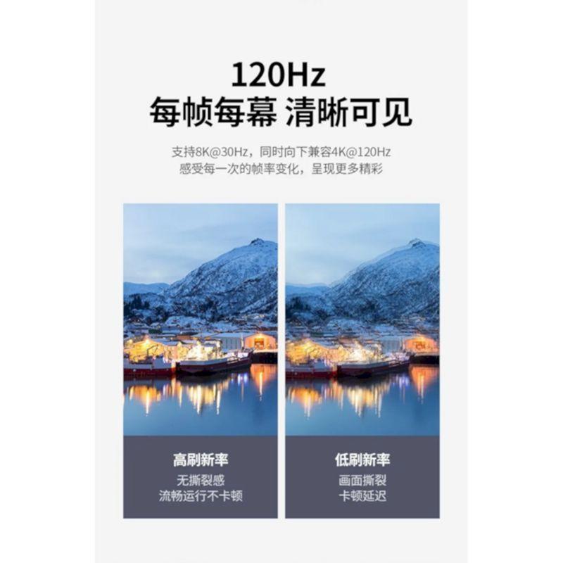 1. 8K resolution support at 60Hz and 4K resolution support at 120Hz for high-definition video and audio. 2. HDR (High Dynamic Range) support for improved color depth, contrast, and brightness. 3. Plug-and-play design, no additional