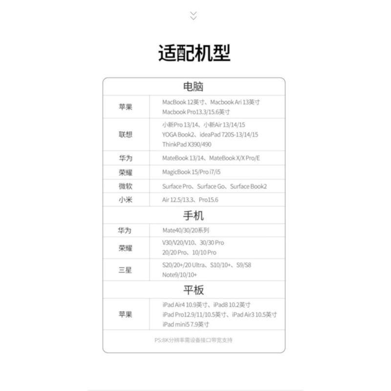 MÔ TẢ SẢN PHẨM Cổng loại C 11 trong 1: Tương thích HDMI + USB3.0 * 1 + USB2.0 * 3 + PD 87W + TF + SD + 100M RJ45 + AUX +