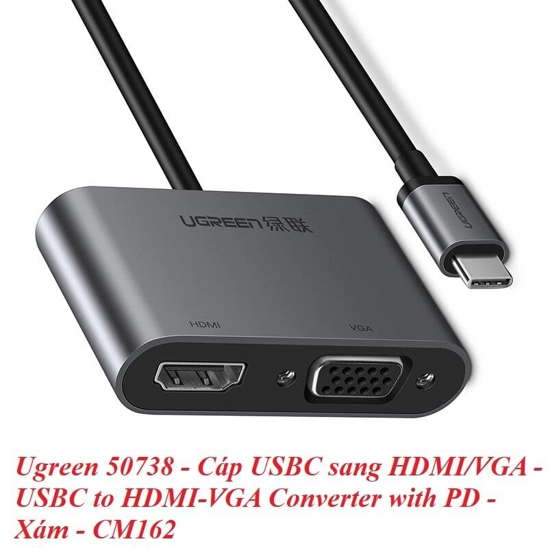 Mua tại TiktokUgreen 50738 15CM usb c to hdmi vga converter with pd xám cm162