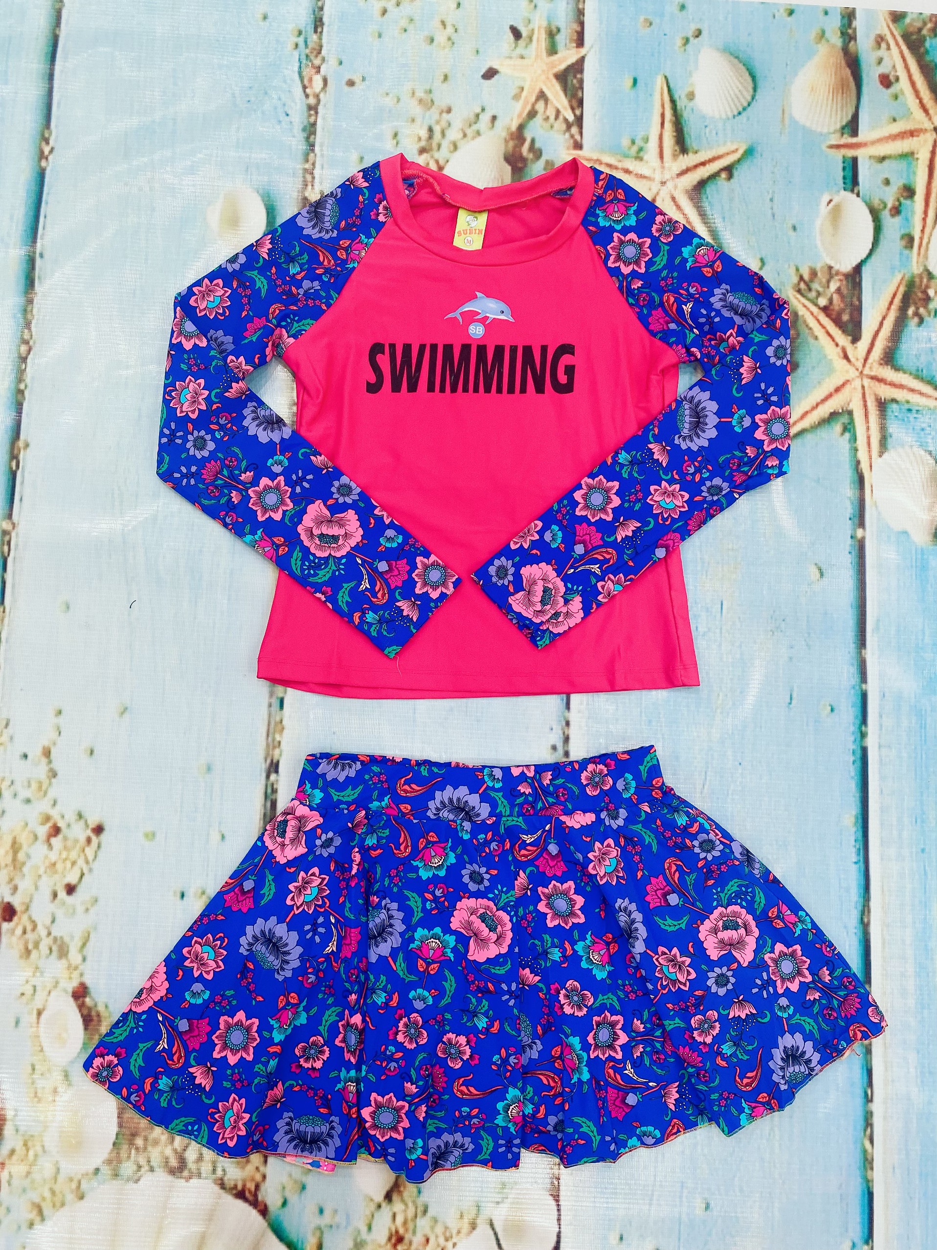 - Mẫu đồ bơi mới nhất cho các bạn nữ thích sự trẻ trung kín đáo mà vẫn thu hút khi đi biển, đi bơi. - Áo dáng ngắn tay phối hoạ tiết trẻ khoẻ,