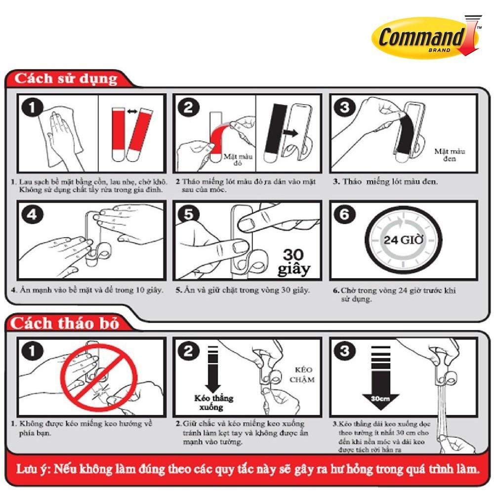 - Thương hiệu: Command - 3M Nhãn hiệu Command có đặc tính khác biệt so với những chiếc móc treo dán tường thông thường trên thị trường, vì vậy một khi đã sử dụng những chiếc móc dán Command 3M bạn hoàn toàn có thể hài lòng và yên tâm cho bức tường cũng như các vật dụng được sắp xếp gọn gàng mà không sợ rơi vỡ…