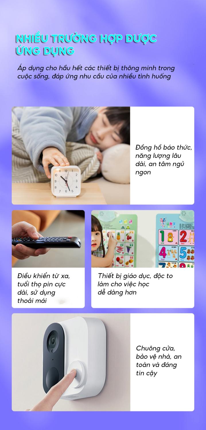 - Sử dụng: Dùng cung cấp năng lượng cho các thiết bị điện tử nhỏ như đồ chơi, đèn pin, điều khiển,...