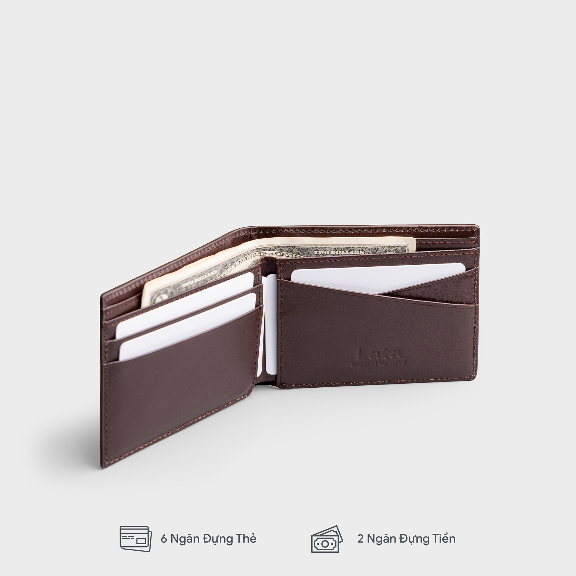 - Công dụng: Đựng tiền, thẻ ATM, CMND/CCCD, giấy tờ tùy thân …