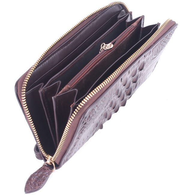 Ví da cá sấu cầm tay 2 ngăn khoá kéo | Ví cầm tay màu nâu đỏ