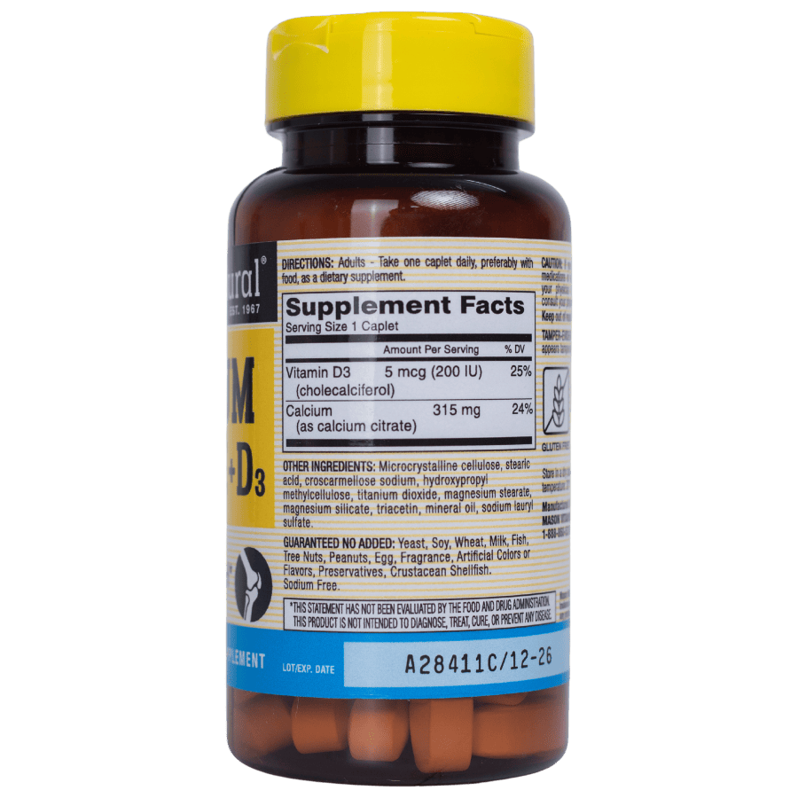 ✨Viên uống Bổ sung canxi hữu cơ cho cơ thể Mason Natural Calcium Citrate + D3 – hộp 60 viên