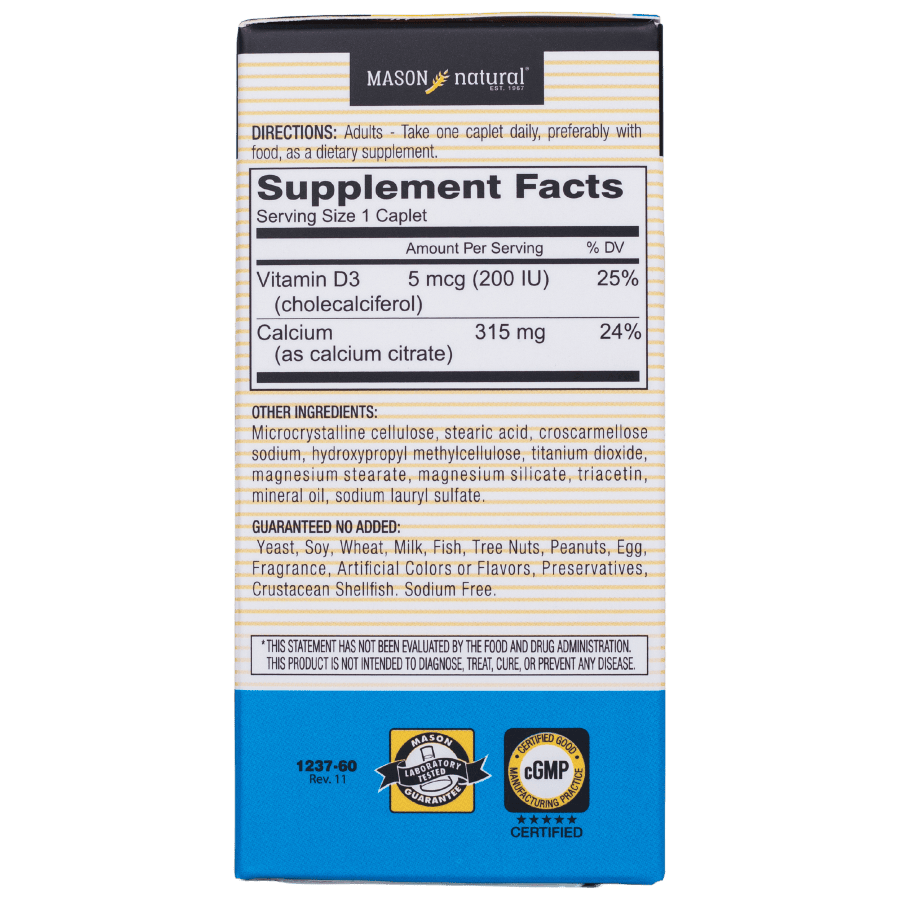 Mason Calcium Citrate + D3 - Canxi hữu cơ mát, không gây sỏi thận Tăng chiều cao tối ưu - Xương răng chắc khỏe - Ngừa loãng xương sớm! Mason Natural - thương hiệu Mỹ