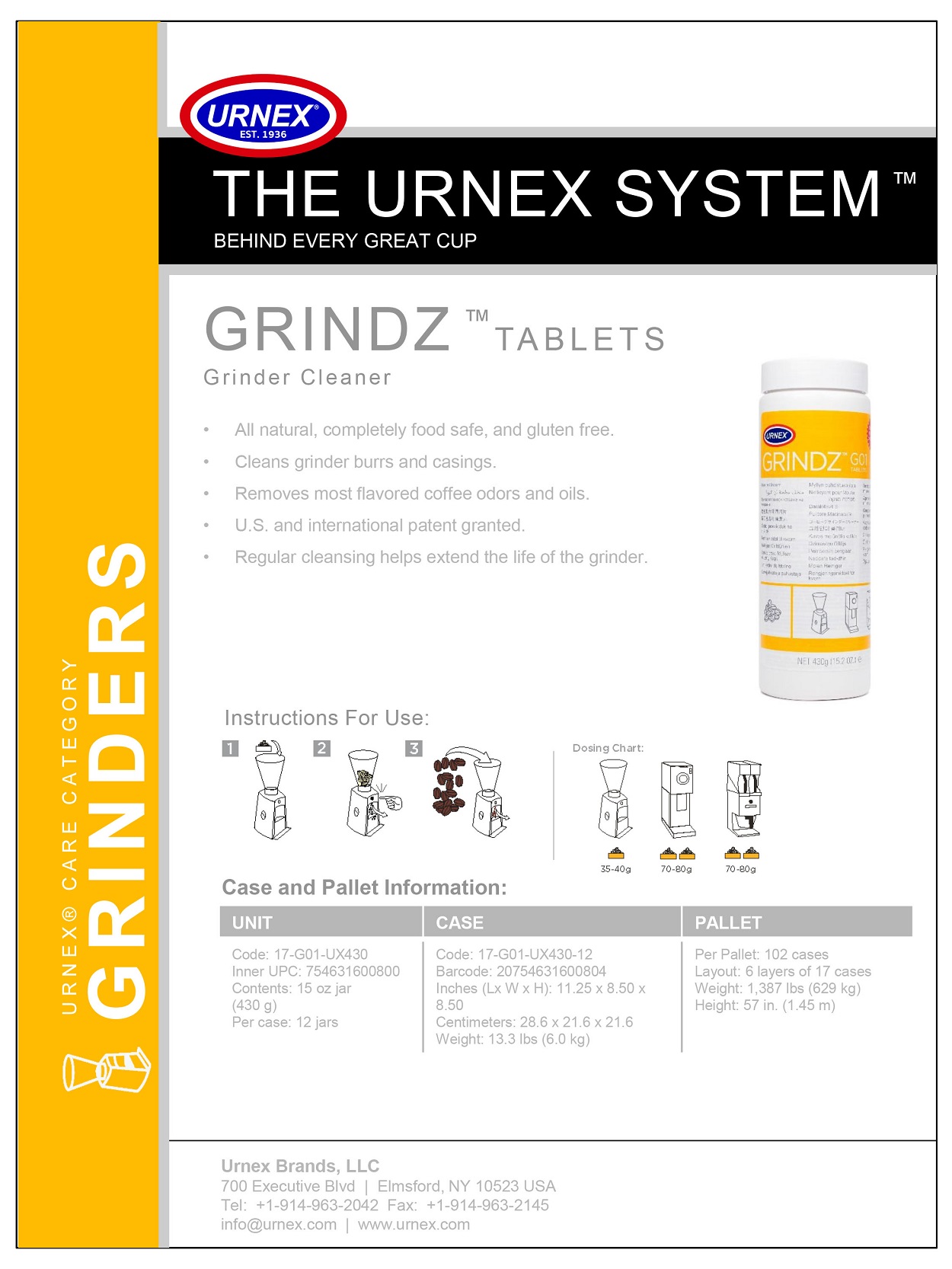 Mỗi hộp 430g sử dụng cho 50 chu kỳ làm sạch – biến đây trở thành giải pháp làm sạch tiết kiệm chi phí cho bất kỳ nhân viên pha chế tại nhà hoặc chủ quán cà phê nào. Hãy nhớ rằng KHÔNG sử dụng sản phẩm này trên máy xay tích hợp trong máy xay và pha cà phê tự động—thay vào đó hãy sử dụng SuperGrindz.. Vì vậy, hãy chọn Viên làm sạch máy xay Urnex GRINDZ của bạn ngay hôm nay và nâng cấp giao diện cho máy may cà phê của bạn ngay hôm nay!