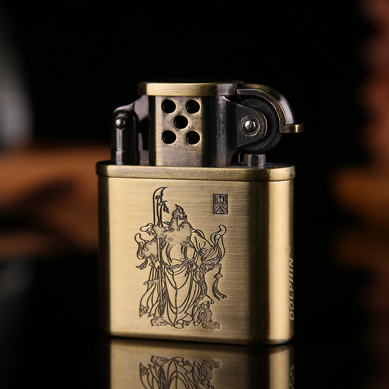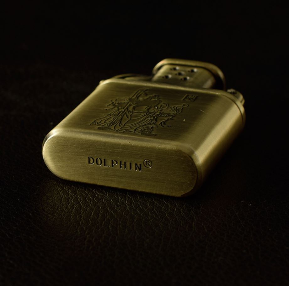 ✨Vỏ Hột Quẹt Bật Lửa Xăng Đá Độc Lạ Dolphin HY676 Khắc Quan Vũ Đẹp Độc Lạ - Dùng Xăng Bấc Đá Cao Cấp