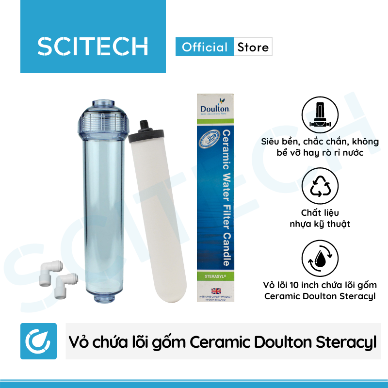 Lõi gốm Ceramic Doulton Steracyl xuất xứ Anh có khả năng loại bỏ hoàn toàn các tạp chất, cặn bẩn, chất lơ lửng có kích thước > 0.1 micron, tiêu diệt các loại vi khuẩn, vi rút, ký sinh trùng, loại bỏ clo, chất hữu cơ. Lõi Ceramic có thể vệ sinh định kỳ và không cần thay thế (chỉ phải thay thế khi vỡ mòn, thường 2-3 năm). Thời gian vệ sinh lõi: sau mỗi 3-6 tháng. Nếu có điều kiện, nên thay lõi sau 12-18 tháng.