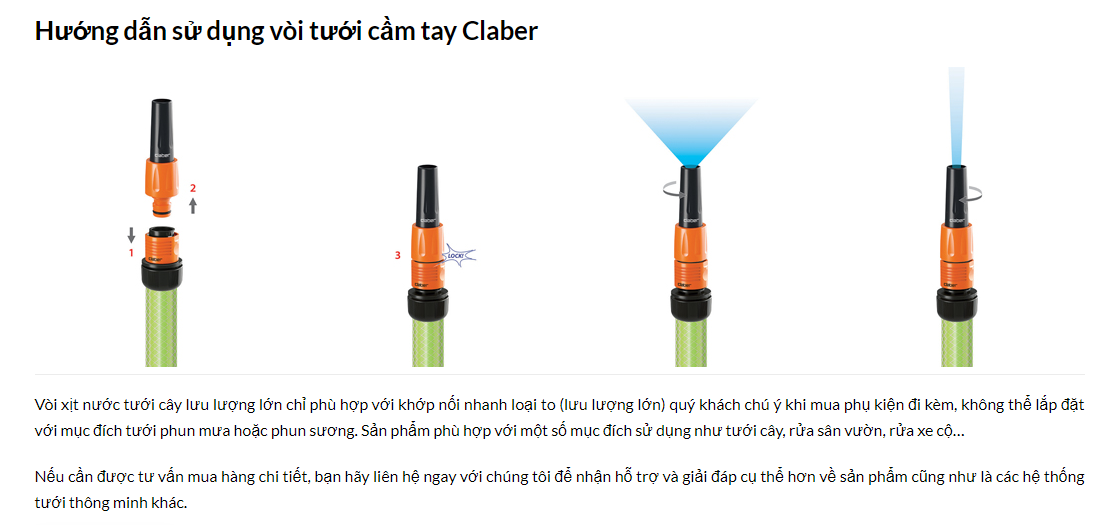 - Sản phẩm có kèm khớp nối nhanh - kết nối được 3 cỡ ống - khớp nối có chức năng ngắt nước khi rút vòi tưới ra.