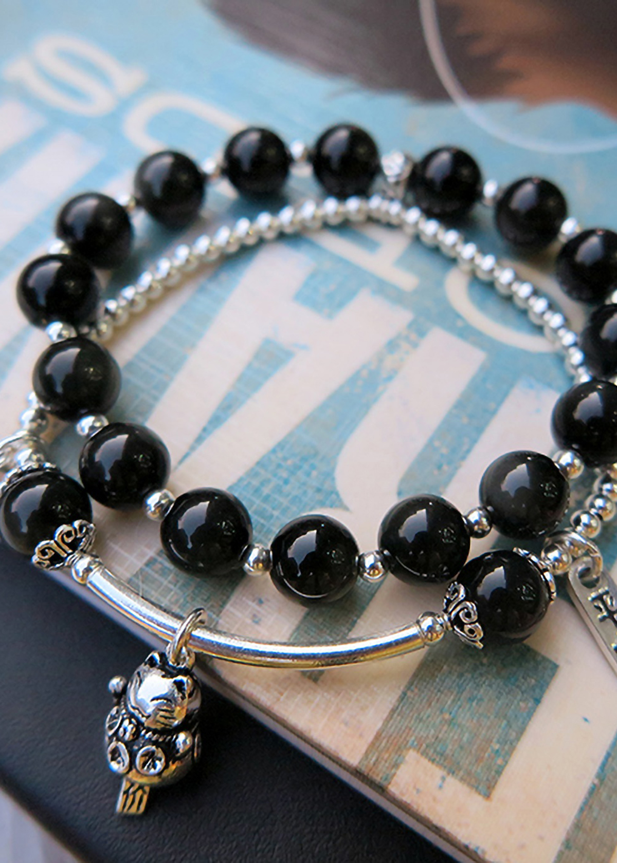 VÒNG 2 LINE ĐÁ THẠCH ANH TÓC ĐEN PHỐI CHARM TRĂNG SAO :