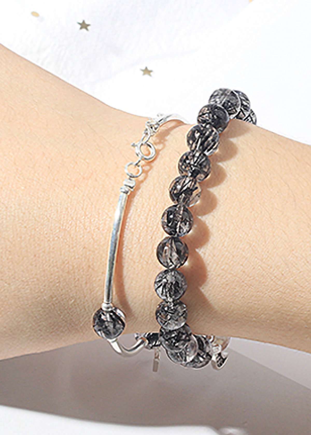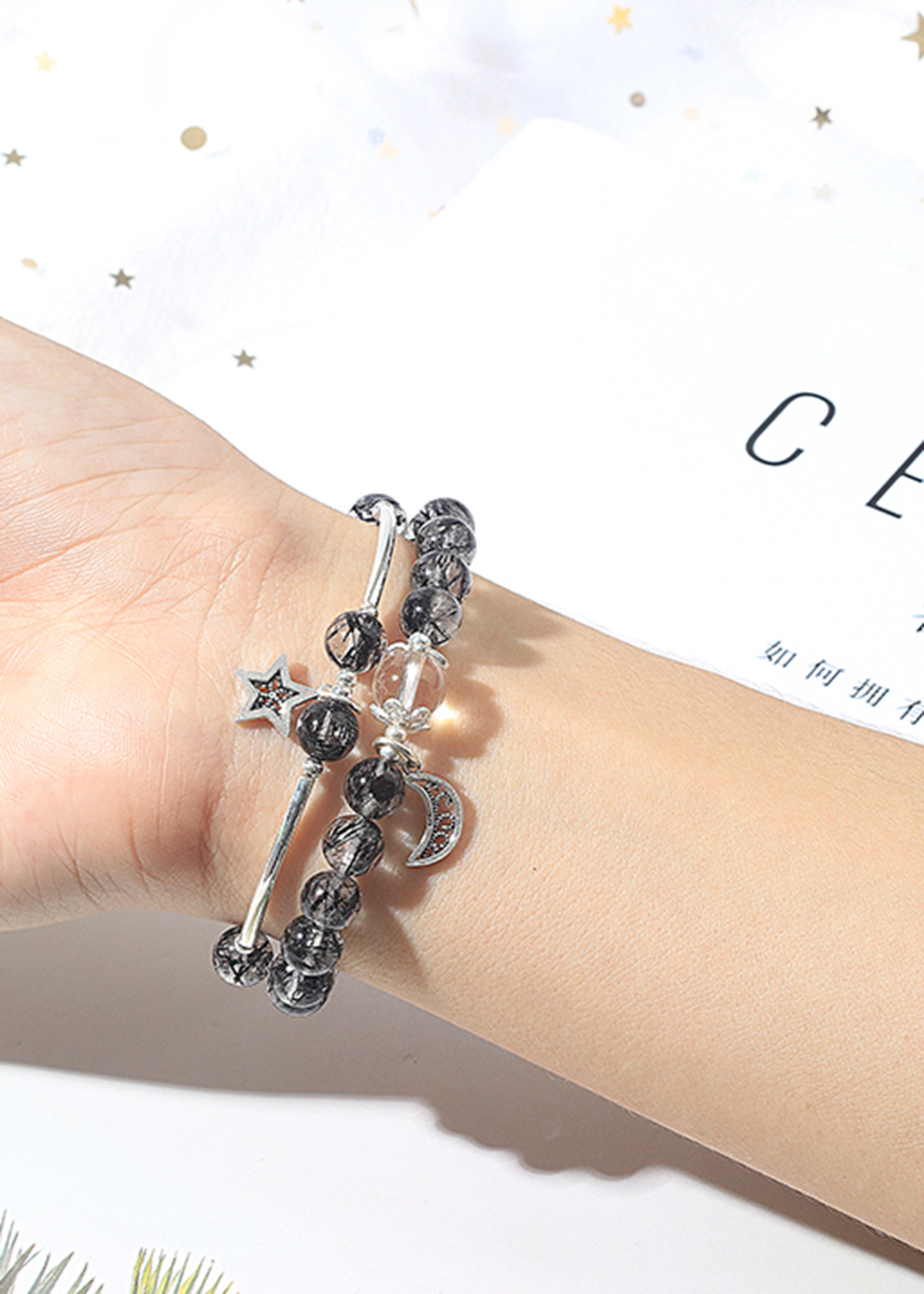 VÒNG 2 LINE ĐÁ THẠCH ANH TÓC ĐEN PHỐI CHARM TRĂNG SAO :