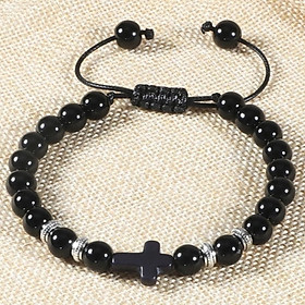 Chuỗi hạt đá đen Chuỗi Mân Côi vòng hạt đá Thánh giá bạc Đức Mẹ kết hạt tấm