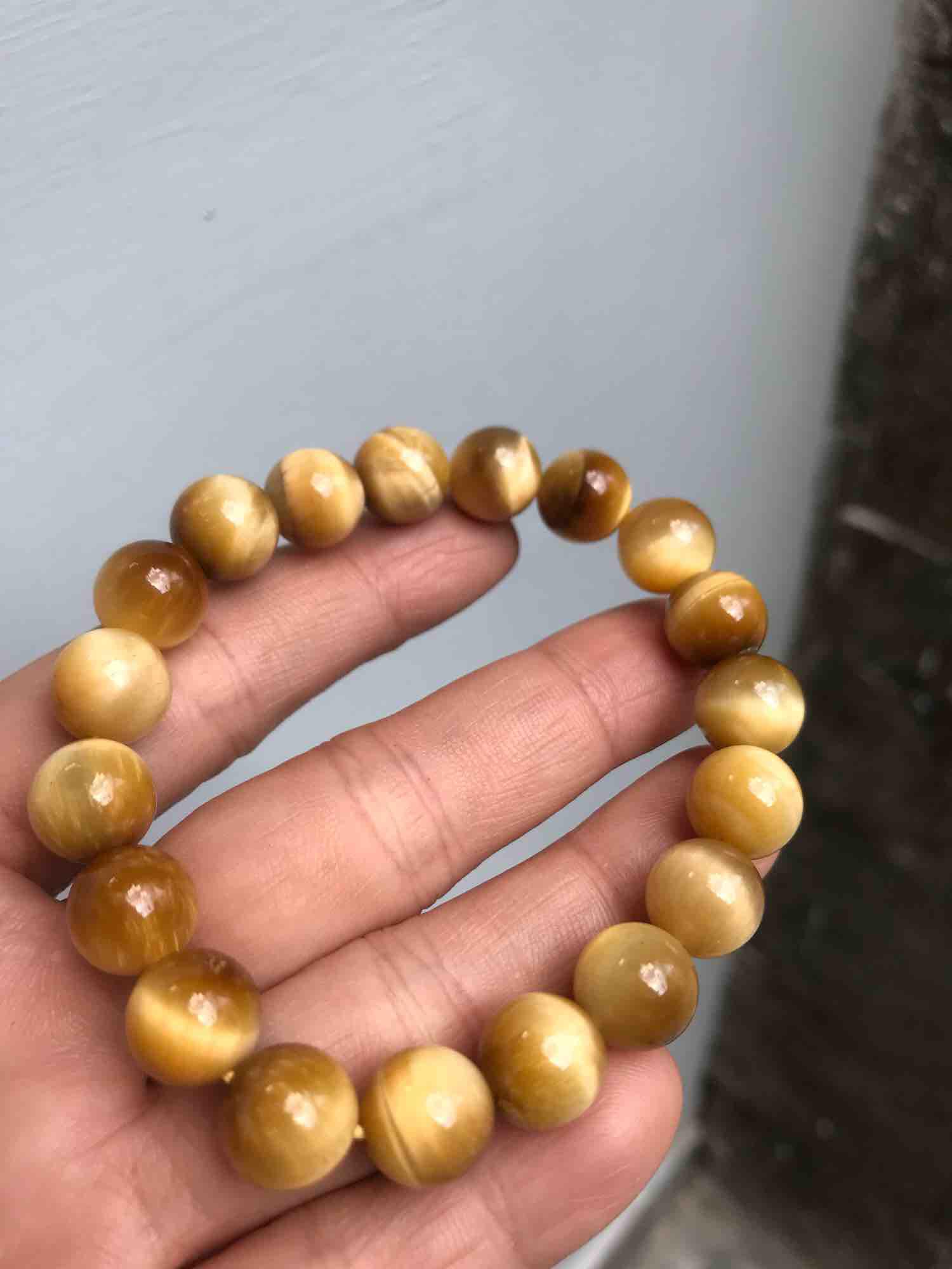 Vòng tay đá mắt hổ tự nhiên vàng nâu nam mệnh kim mệnh thổ size 14ly ạ / Gỗ đá phong thủy Sunny Q8
