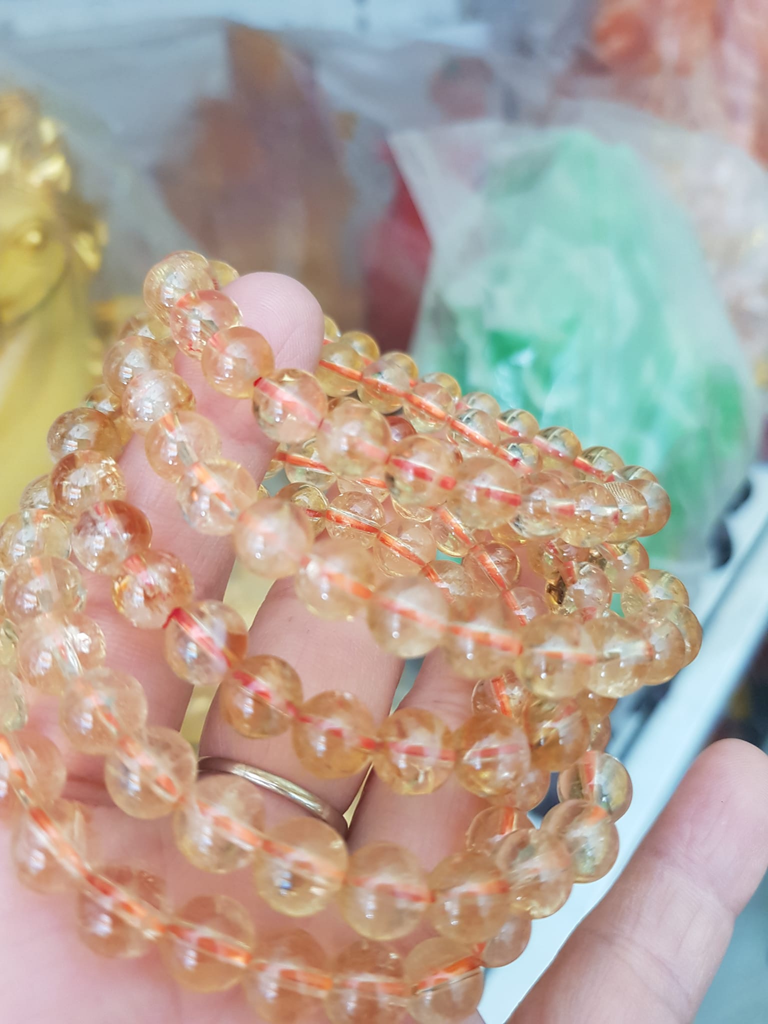 Chuỗi vòng thạch anh tóc vàng chất trong suốt siêu đẹp - Kích thước: 6.9 li - 34.6g- Gía bán: 2500k