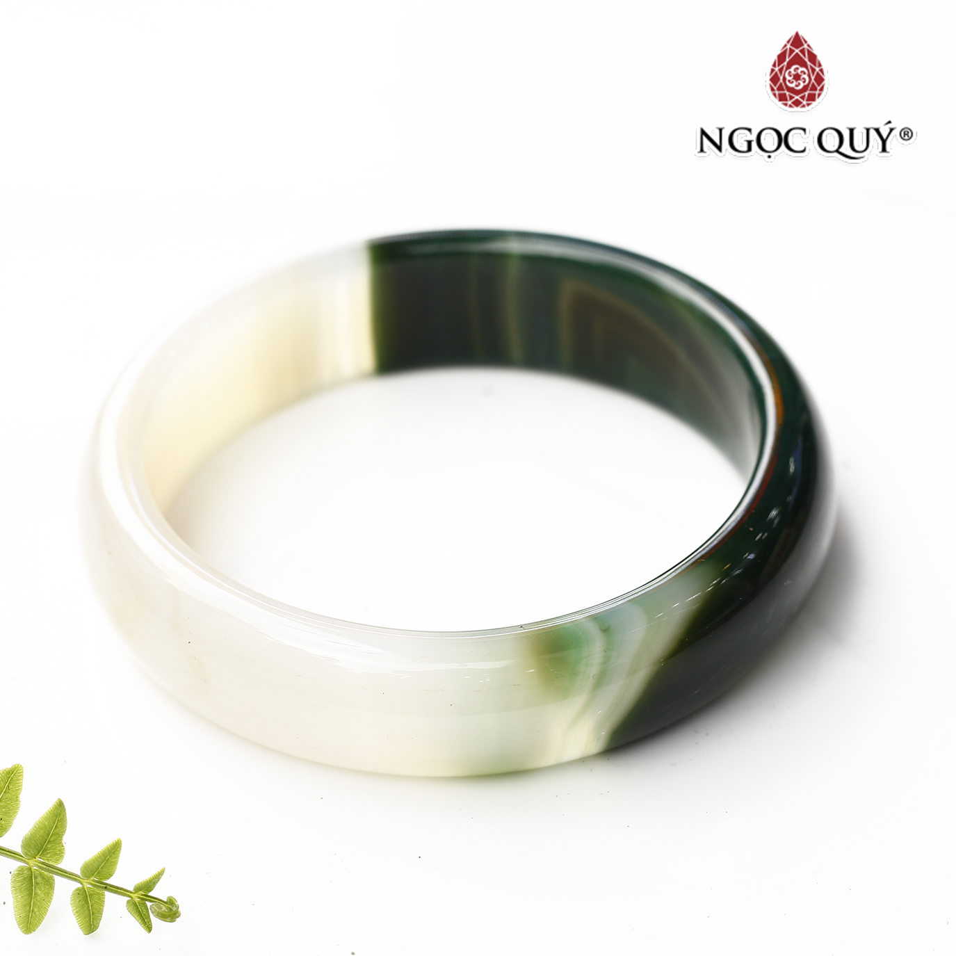 Vòng nguyên khối bản cọng tròn đá mã não xanh - Hợp Mệnh Mộc & Hỏa [ Ngọc Quý ]