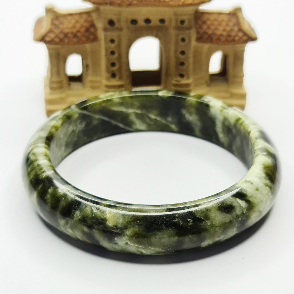 ✨Vòng Tay Dạng Bản Liền Nguyên Khối Đá Ngọc Serpentine Xanh Sẫm - Mx