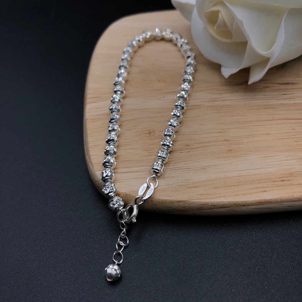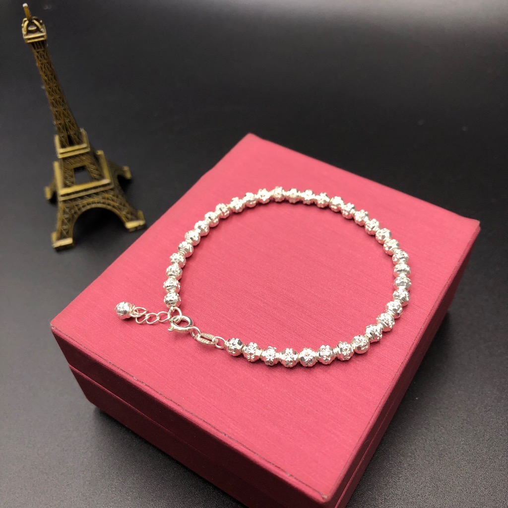 Là con gái, hẳn bạn luôn bị cuốn hút trước những bộ cánh thời trang và những đôi giày sành điệu. Tuy nhiên để làm hoàn hảo hình ảnh của mình trong mắt người đối diện, các bạn cần thêm những món phụ kiện bé bé xinh xinh để điểm tô cho vẻ ngoài thêm ấn tượng. Và hôm nay, S sẽ mang đến các bạn cơ hội sở hữu chiếc lắc tay rất dễ thương, được làm bằng bạc ta. Sản phẩm thích hợp với những bạn gái có phong cách dịu dàng, nữ tính.