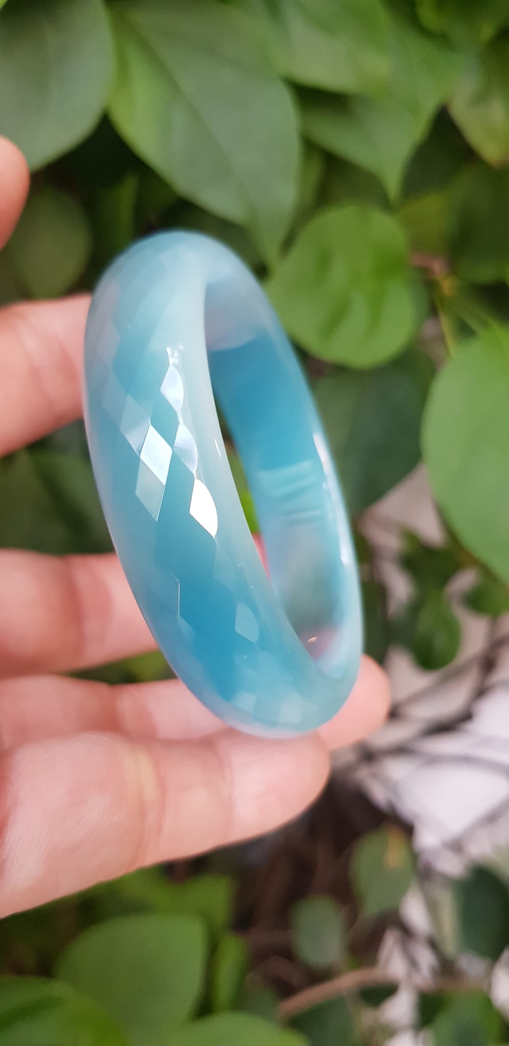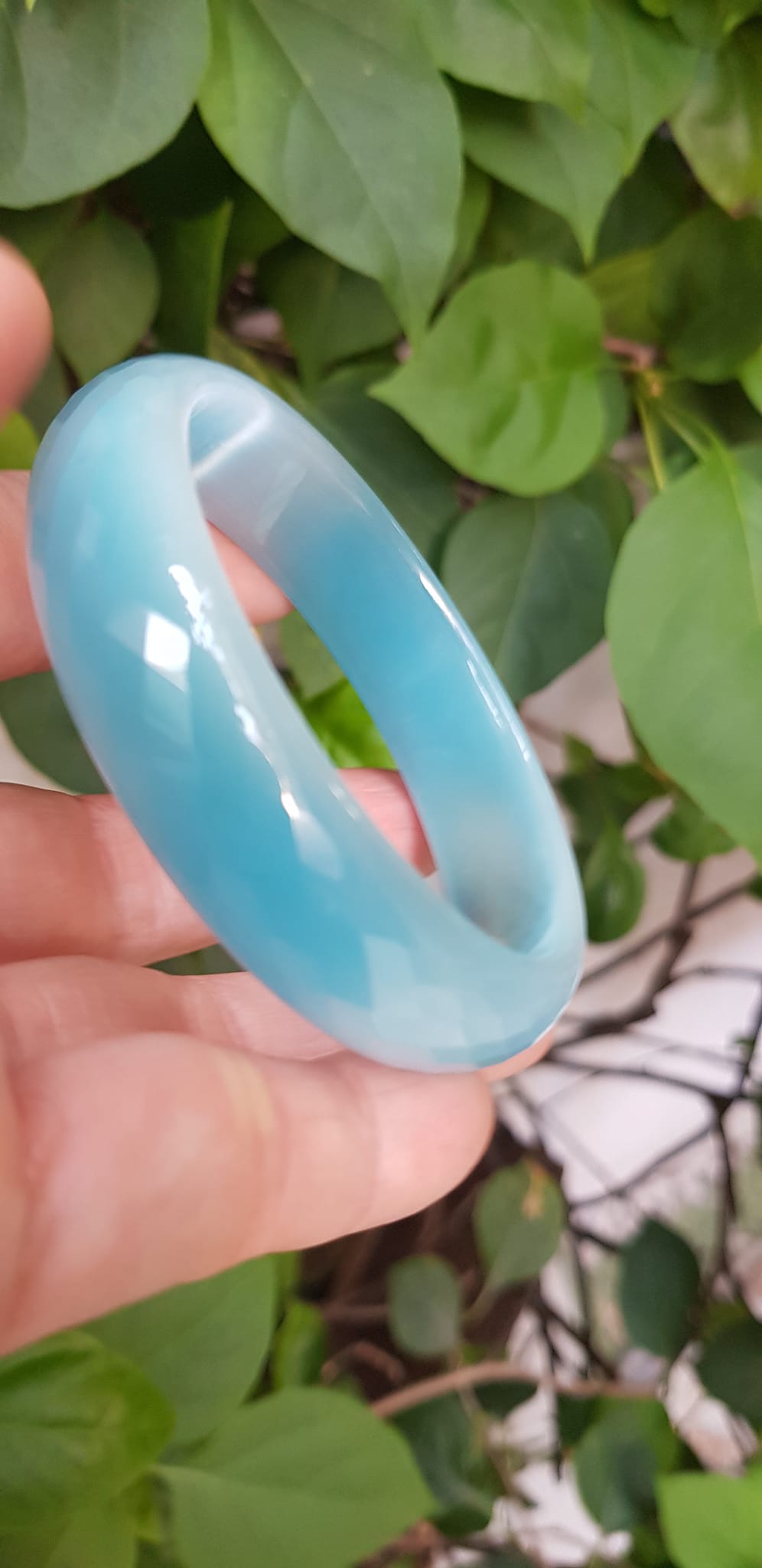 Vòng tay nữ đá mắt mèo Xanh dương nhẹ bản hẹ mới Ni 53mm x cao 12mm x dầy 6,5mm nữ 49kg - 54kg đeo