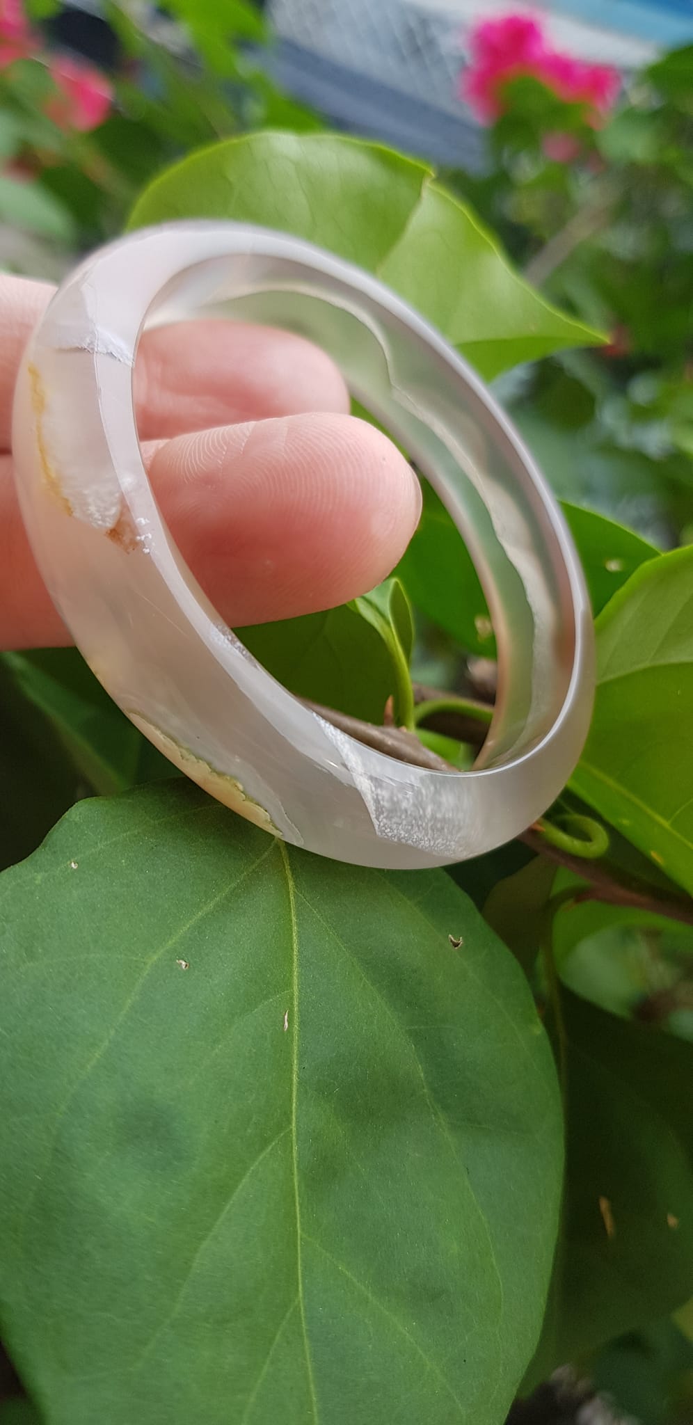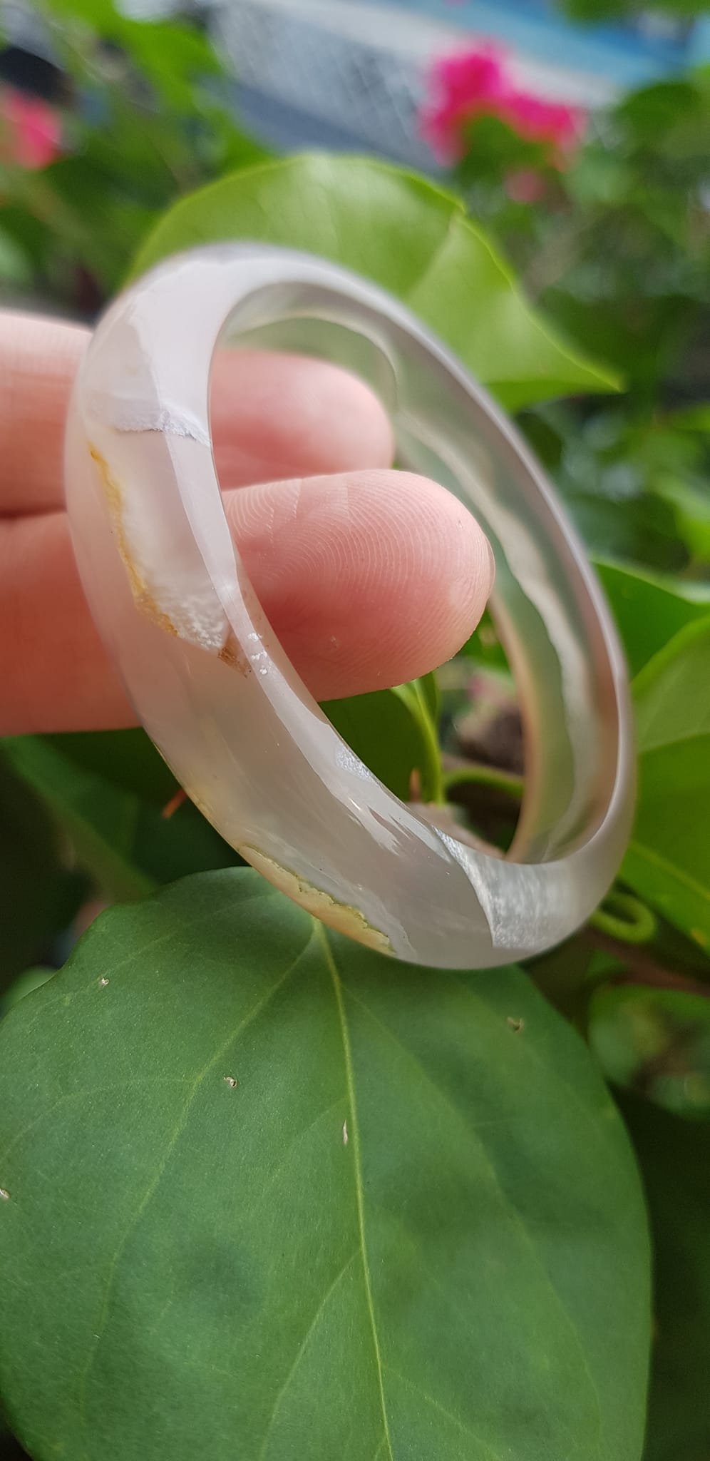 Vòng tay Nữ Bản Hẹ Mới Đá Mã Não Bông Tuyết Hồng nhẹ trắng trong bóng quá đẹp luôn ạ Ni 53mm x Cao 11mm x dầy 7mm Nữ Cân nặng 52kg - 55kg đeo