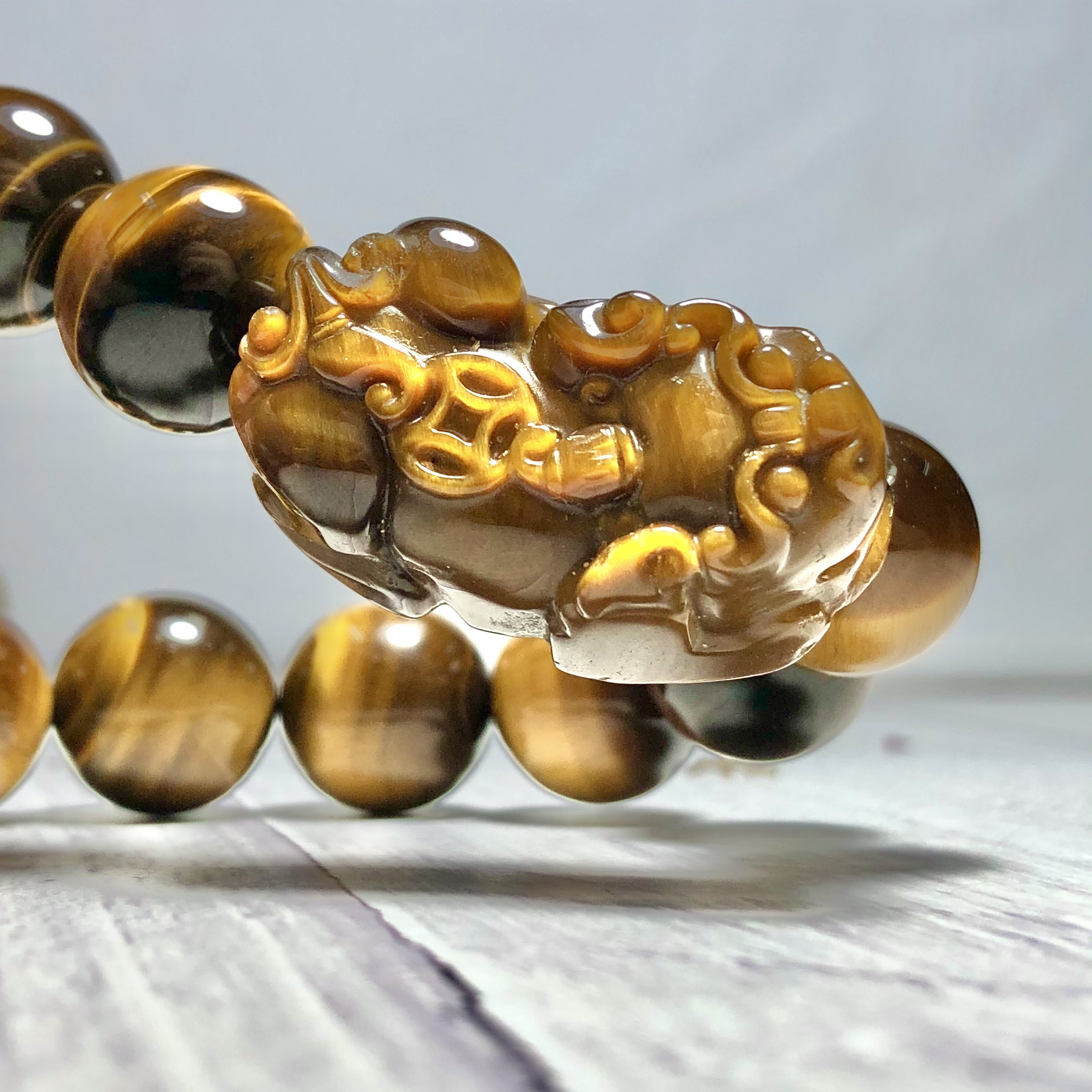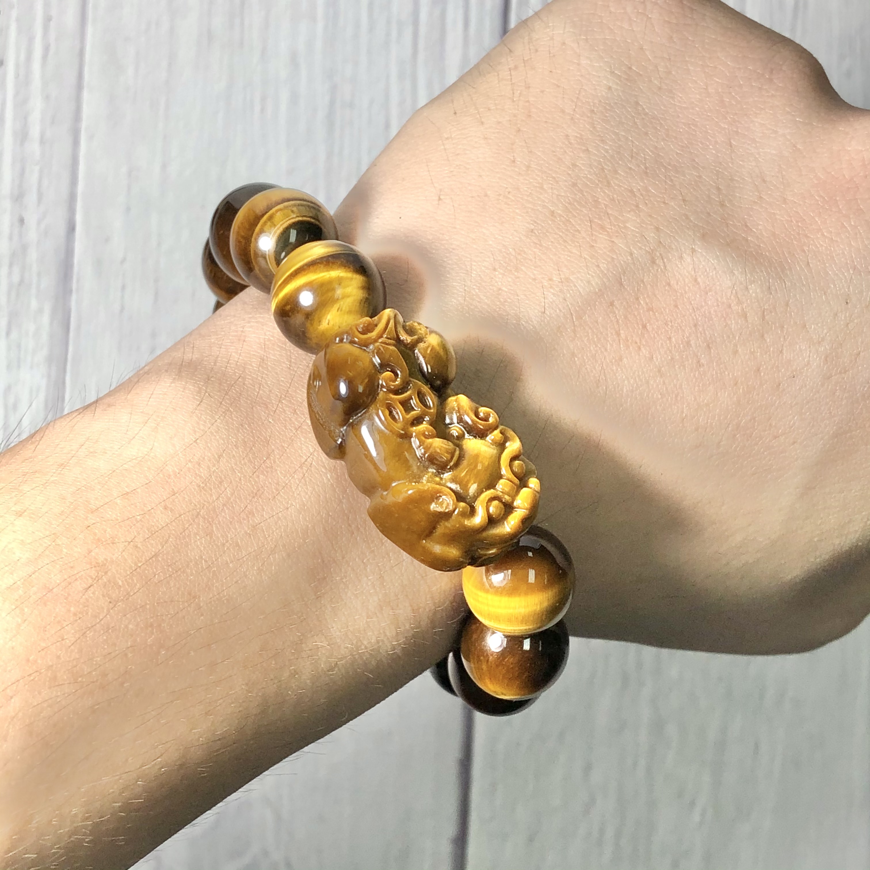 Vòng tay Thạch Anh Mắt Hổ vàng nâu 14mm mix tỳ hưu đá Loại trang sức: vòng đá phong thủy kết hợp tỳ hưu đá - Xuất xứ: Brazil - Kích thước: 14mm - Chuẩn đá: 5A - Kiểu dáng: vòng