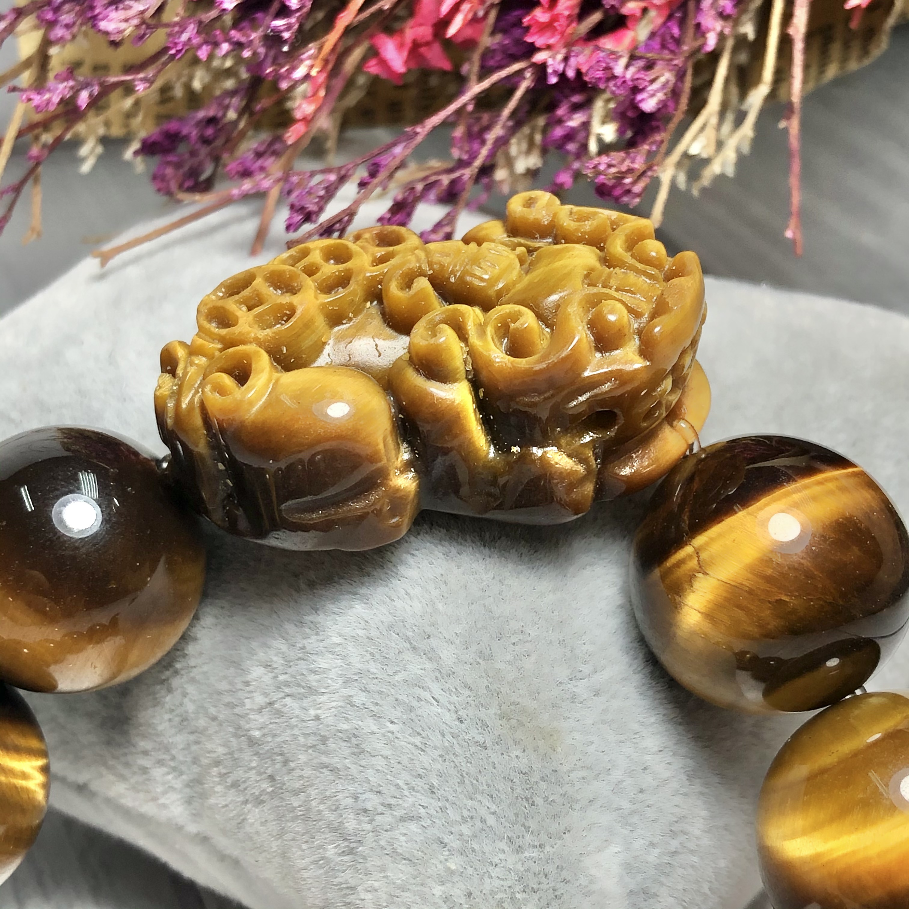 - Chất liệu: đá Mắt Hổ tự nhiên kết hợp tỳ hưu đá