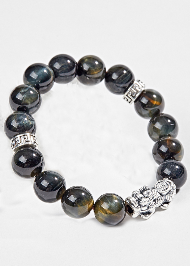 Vòng Thạch Anh Mắt Hổ Xanh Đen Phối Tỳ Hưu Bạc (12mm) Ngọc Quý Gemstones mang lại sự tự tin, dũng khí và giúp cho con người quyết đoán hơn trong công việc, đem đến sự thành công.