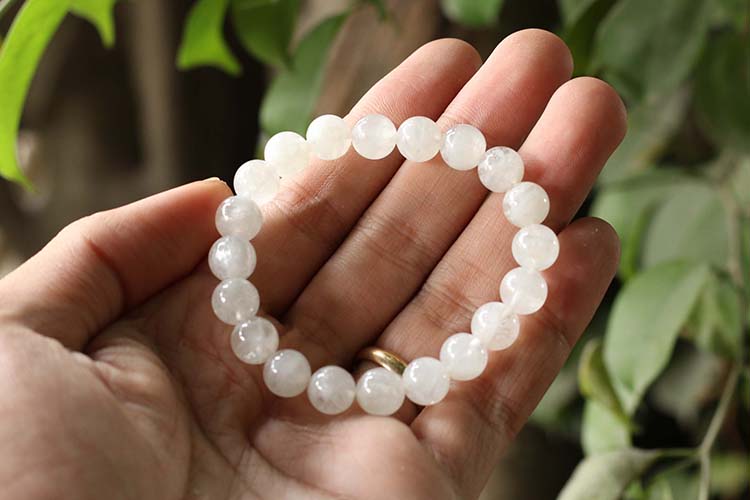 Vòng tay nguyên khối đá thạch anh ưu linh trắng - Hợp Mệnh Kim & Thủy [Ngọc Quý]