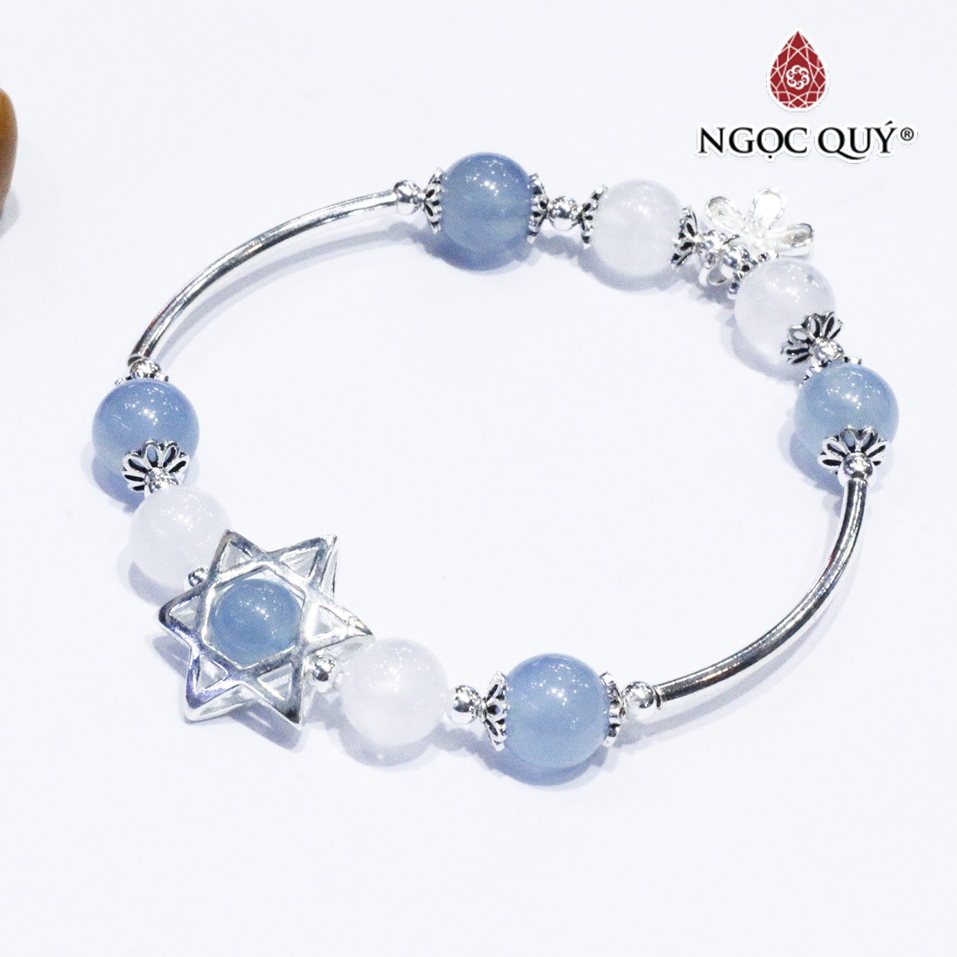 ✨Vòng thạch anh ưu linh trắng phối aquamarine charm bạc - Ngọc Quý Gemstones