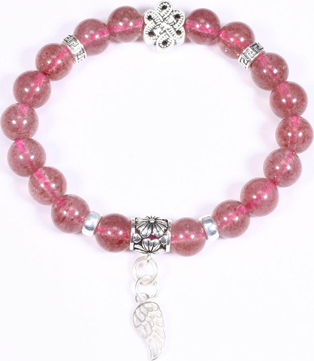 ✨VVòng tay đá thạch anh dâu hồng mix charm cánh bạc hạt đá 8mm mệnh hỏa, thổ - Ngọc Quý Gemstones