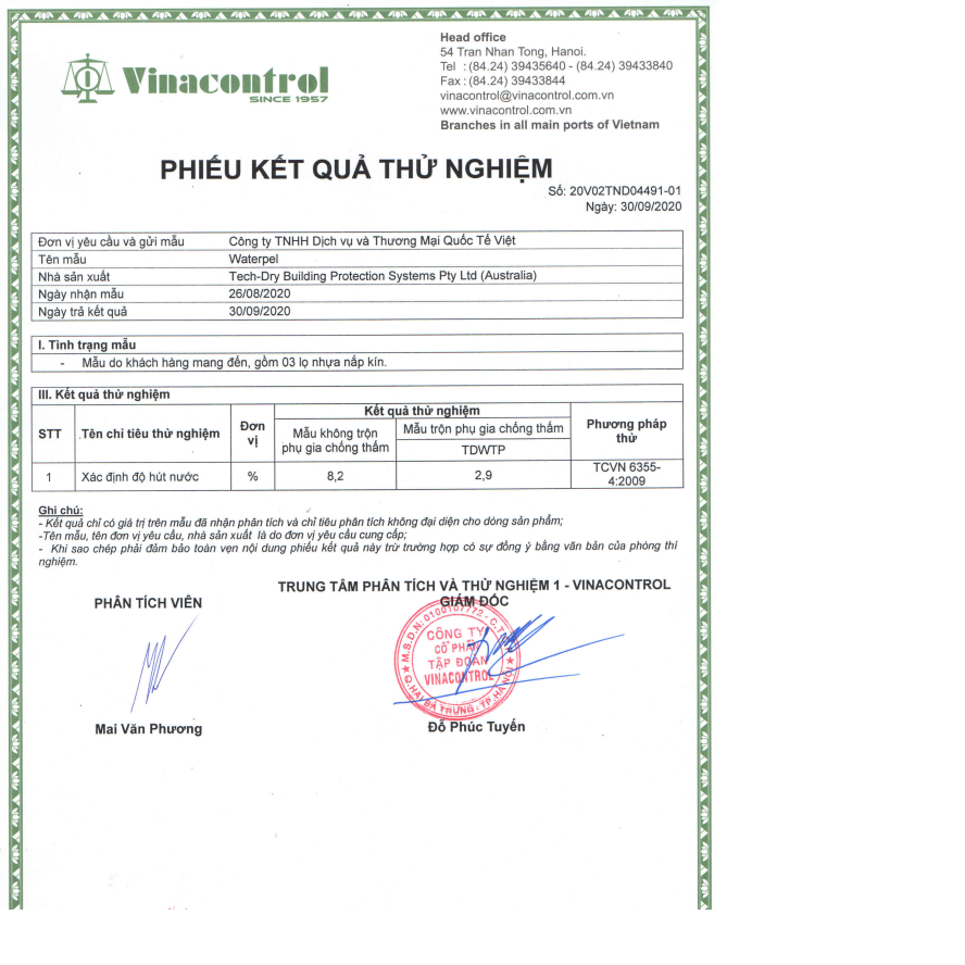 hợp bê tông, khả năng ngấm nước và hiện tượng phấn hóa được loại trừ hoàn toàn.