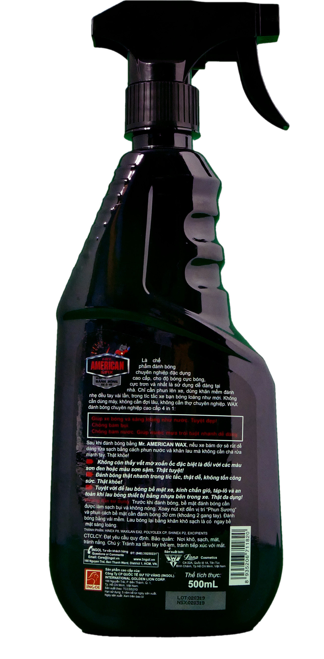 Mua tại TiktokSau một thời gian sử dụng ô tô, với thời tiết khắc nghiệt như Việt Nam, thì việc sử dụng cách đánh bóng xe ô tô để phục hồi, tân trang và làm đẹp bề mặt sơn là nhu cầu thiết yếu và cũng là vấn đề lớn đối với các chủ xe. Mr. American Wax là chế phẩm đánh bóng chuyên nghiệp, cao cấp, cho độ bóng cực bóng, cực trơn và nhất là dễ dàng sử dụng tại nhà. Chỉ cần phun lên xe, dung khăn mềm đánh nhẹ đều tay vài lần, trong tích tắc, xe bạn sẽ bóng loáng như mới. Không cần dung máy, không cần đợi lâu, không cần thợ chuyên nghiệp. Sau khi đánh bóng bằng Mr. American Wax, nếu xe bám dơ sẽ rất dễ dàng rửa sạch bằng cách phun nước và khăn lau mà không cần chà rửa mạnh tay. Thật khỏe!