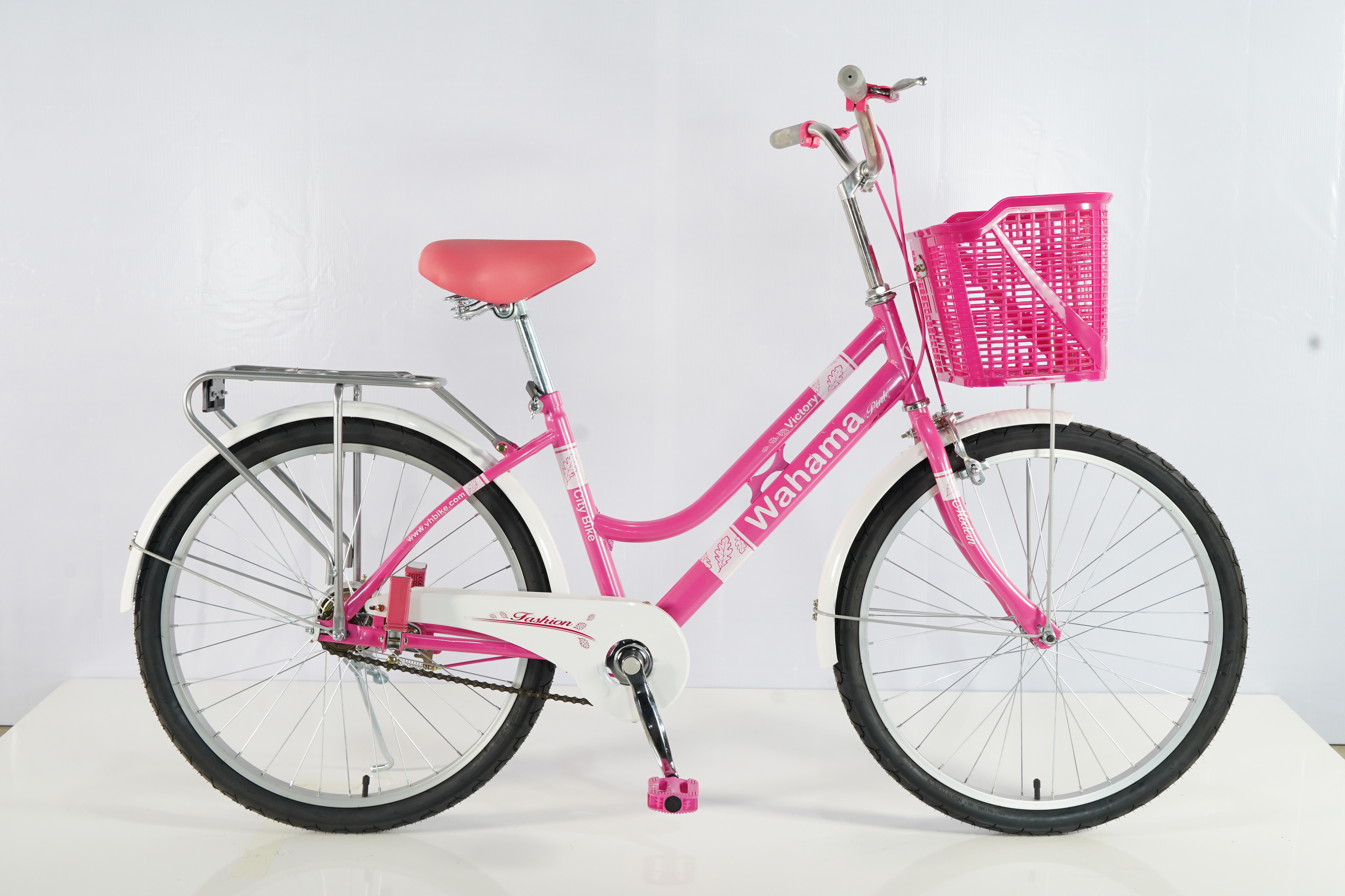 Xe đạp Wahama VICTORY 26 inch có khung baga ngồi sau chắc chắn, bên cạnh có tấm lưới nhựa trang trí, đồng thời hạn chế bắn bùn đất bẩn, phía trước có giỏ xe bằng nhựa với thể tích lớn. Hiện xe có 2 phiên bản màu sắc cho người dùng lựa chọn : Kem, Hồng - Các chi tiết khung sườn, phụ kiện nhỏ đi kèm đều được phối màu sắc hài hòa theo phiên bản giúp tăng tính thẩm mỹ và đồng nhất màu cho xe.