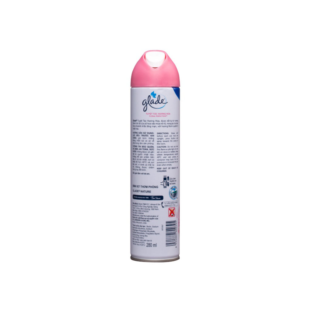 - Xịt phòng của thương hiệu Glade được sản xuất theo công nghệ hiện đại, cùng thành phần tự nhiên, đảm bảo cho không gian sống của bạn có hương thơm an toàn và tinh